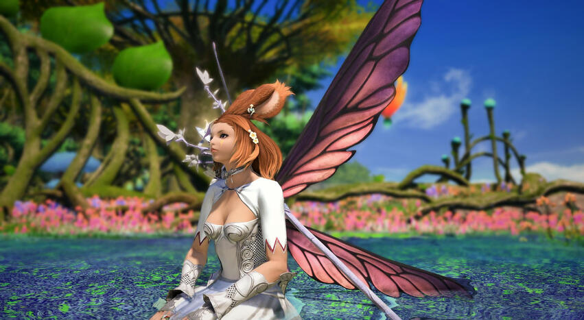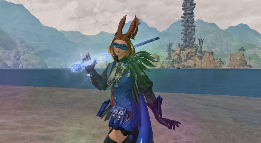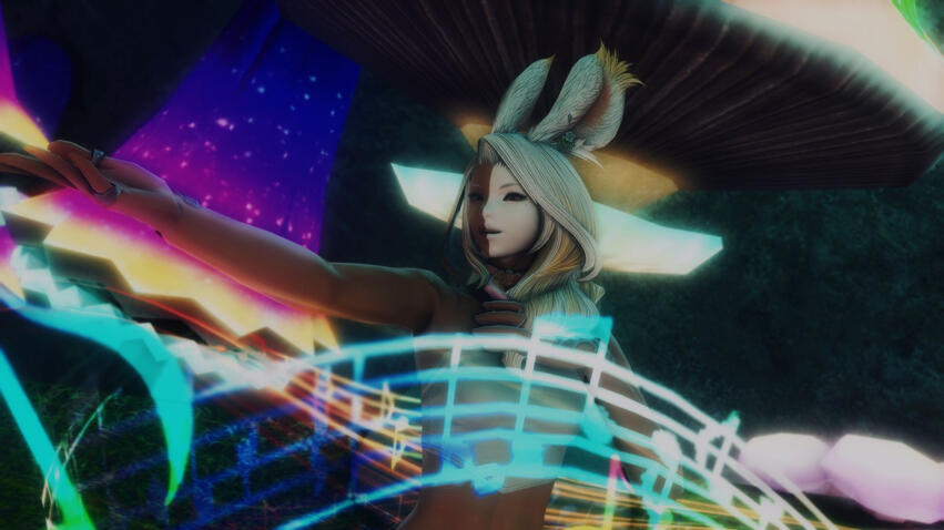 From the edge of the small outpost of Qalaba'r, she heard an otherworldly sound, like a harp but woven with enchantments. Its source was an entrancing miqo'te bard, who must have been playing something truly special. It seemed to reawaken memories of her own people and their songs. She still couldn't feel their presence like she once could, but suddenly it felt okay to remember them again. After being moved to tears, she held hand to chest and said her own name, the first word she had spoken since leaving the forest.