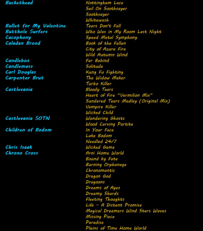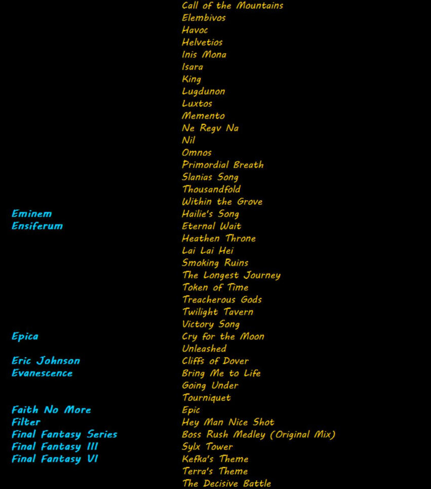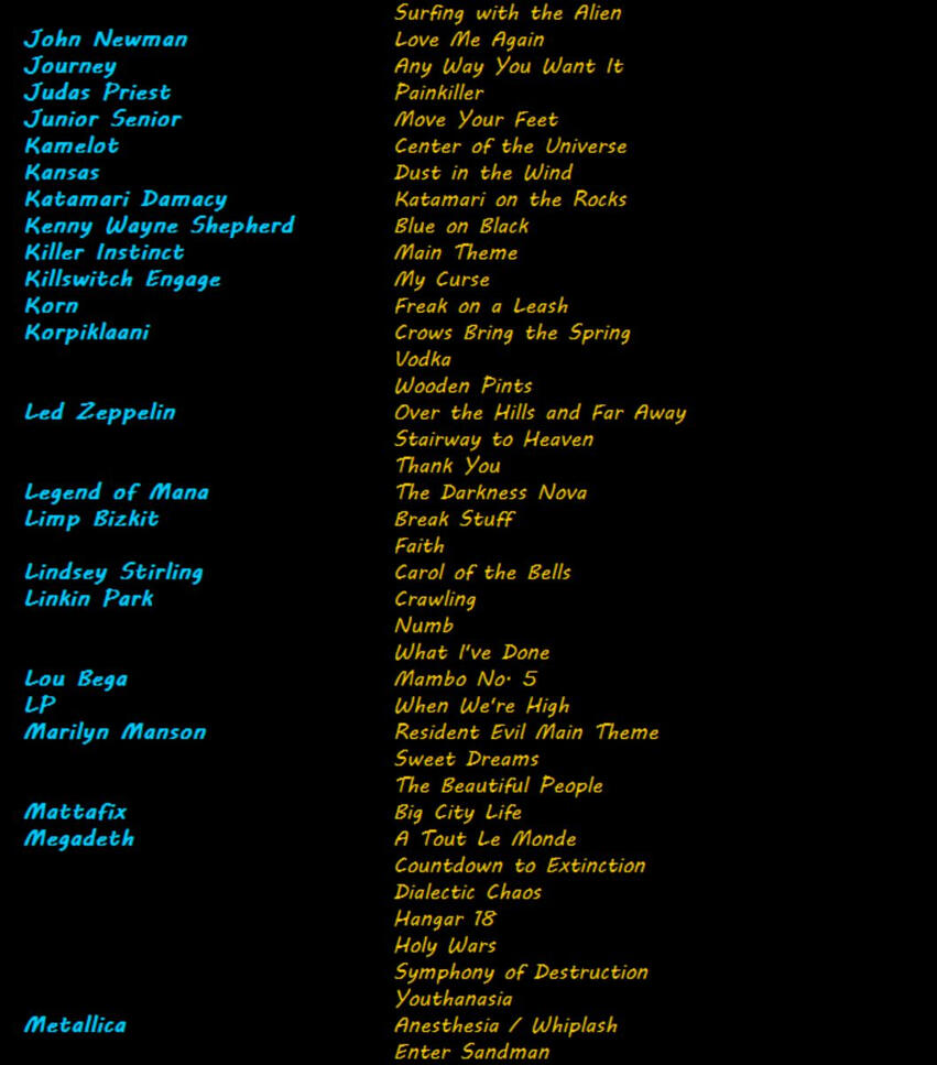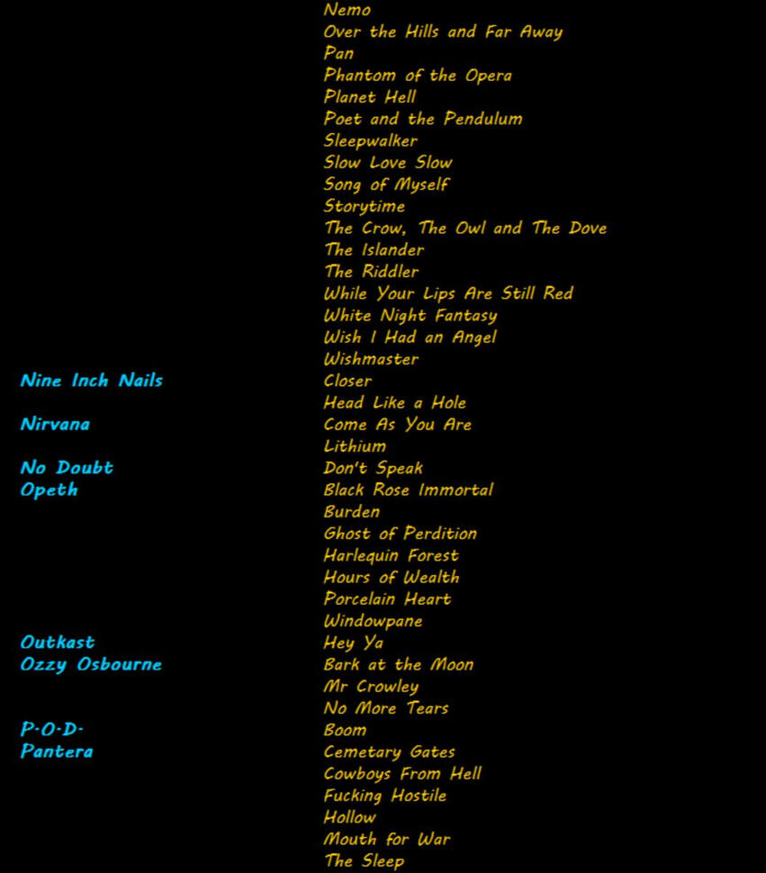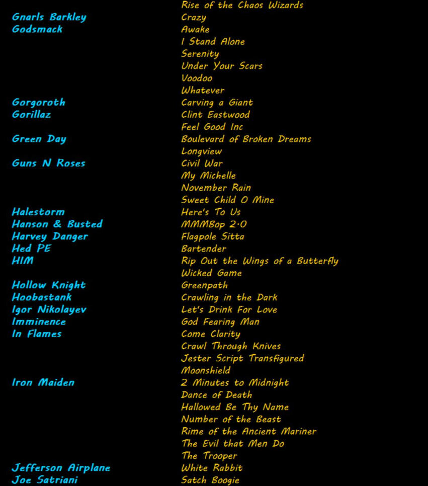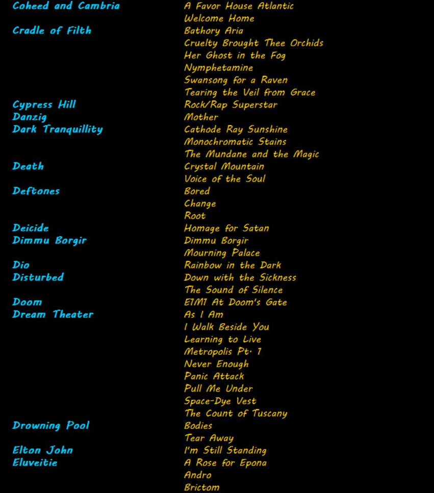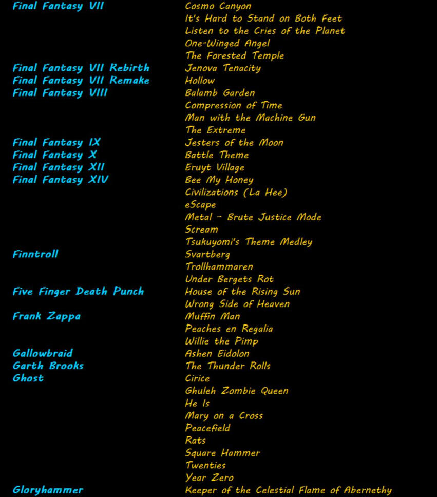 Below is a sample of my octet song list. It's not complete and it's always growing, so if you don't see it here, feel free to ask! I specialize in extreme metal & rock, but I enjoy working with pretty much any genre.